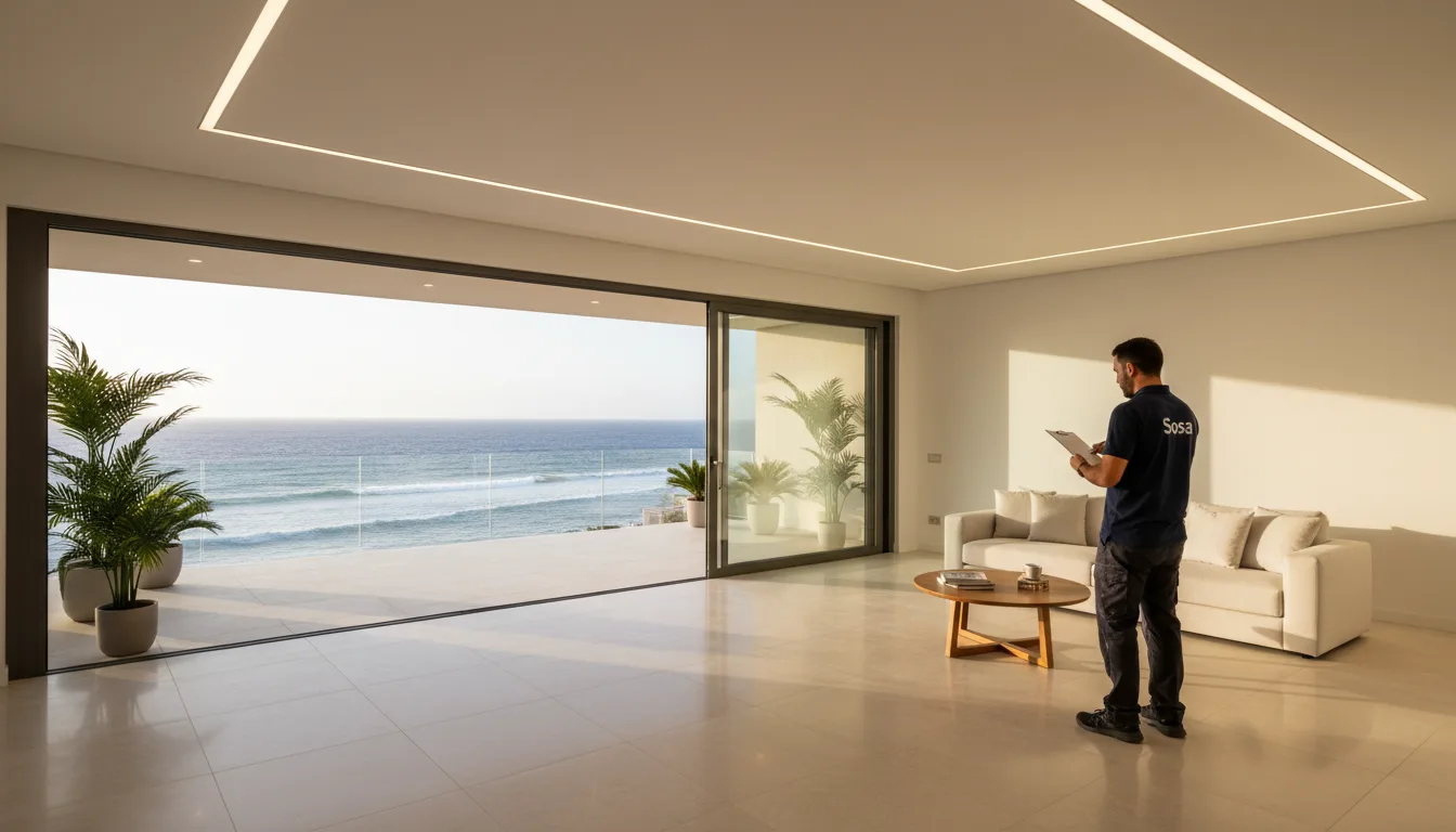 Die Kombination aus Salzluft, intensiver UV-Strahlung und gelegentlichen Sahara-Stürmen (Calima) setzt Fenstern und Fassaden auf Gran Canaria deutlich stärker zu als in Mitteleuropa. Die beste Lösung: Aluminium mit Thermotrennung. Wir arbeiten mit einem Hersteller direkt auf der Insel — kein Import, kurze Lieferzeiten, schneller Service.